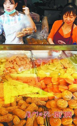 而在一家饼店前,蒜蓉枝、枕头饼、麻酪也受到欢迎,“清明节一天每样起码多卖五六十斤。”老板娘说。馅饼也成为厦门人的清明新宠,在阿吉仔馅饼店门口,顾客排成长队,工作人员说,一天可多卖一千盒。