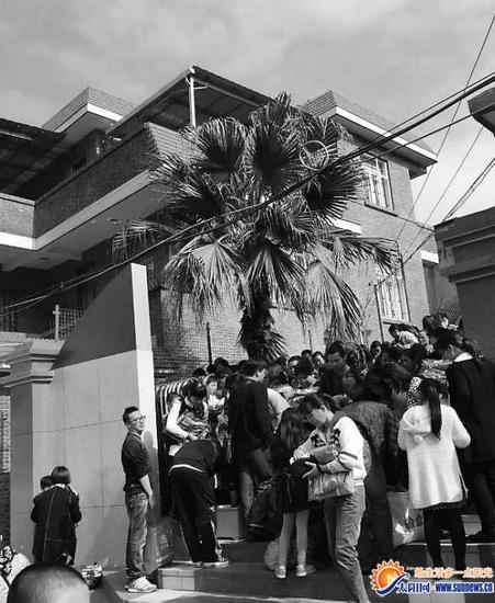 据了解,当时聚集在现场的家长有一两百人,供货商只来了几人,要找号码拿衣服,还要收钱,手忙脚乱,学校方面只有保安在。